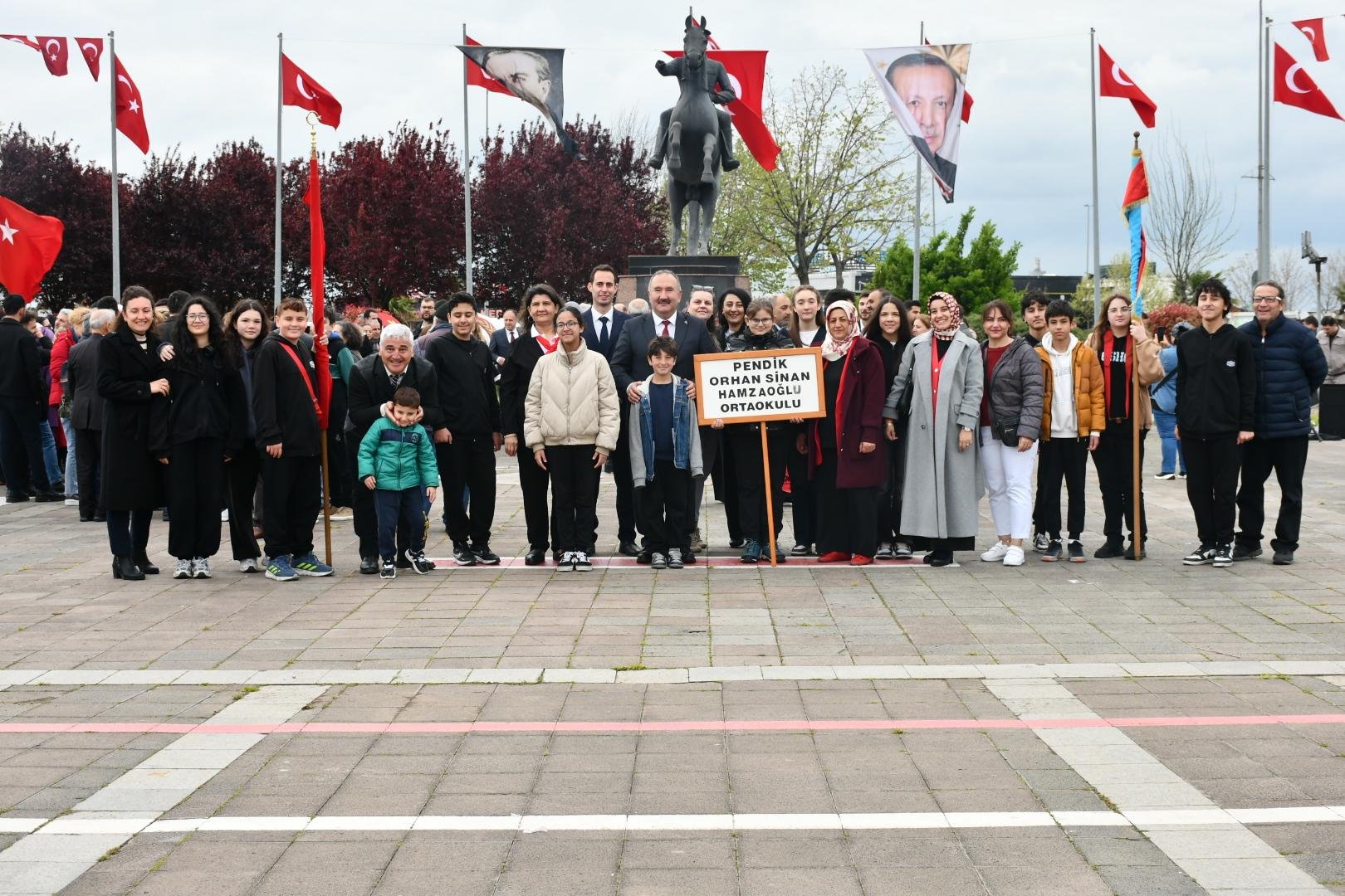 İlçe Milli Eğitim Müdürü Ertan Saygın, Şube Müdürü Ferhat Gücükoğlu, okul müdürleri, öğrenciler, siyasi parti temsilcileri ve Pendikli vatandaşların katılımıyla gerçekleştirilen tören, saygı duruşu ve İstiklal Marşı’nın okunmasıyla son buldu.