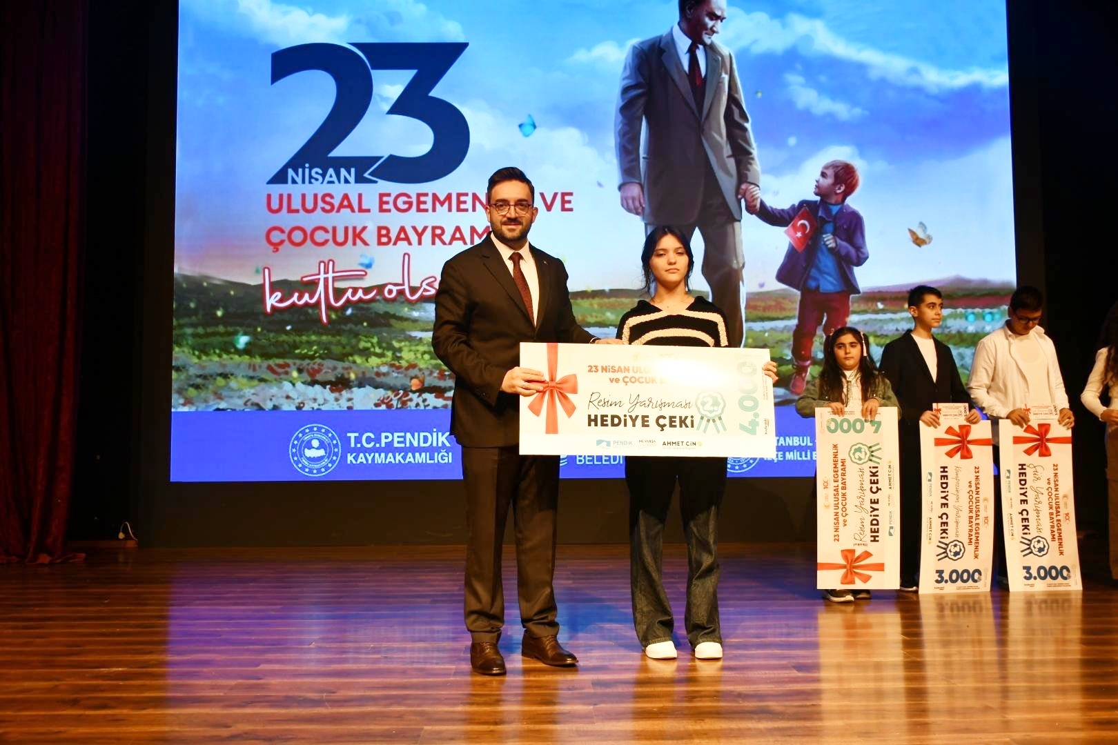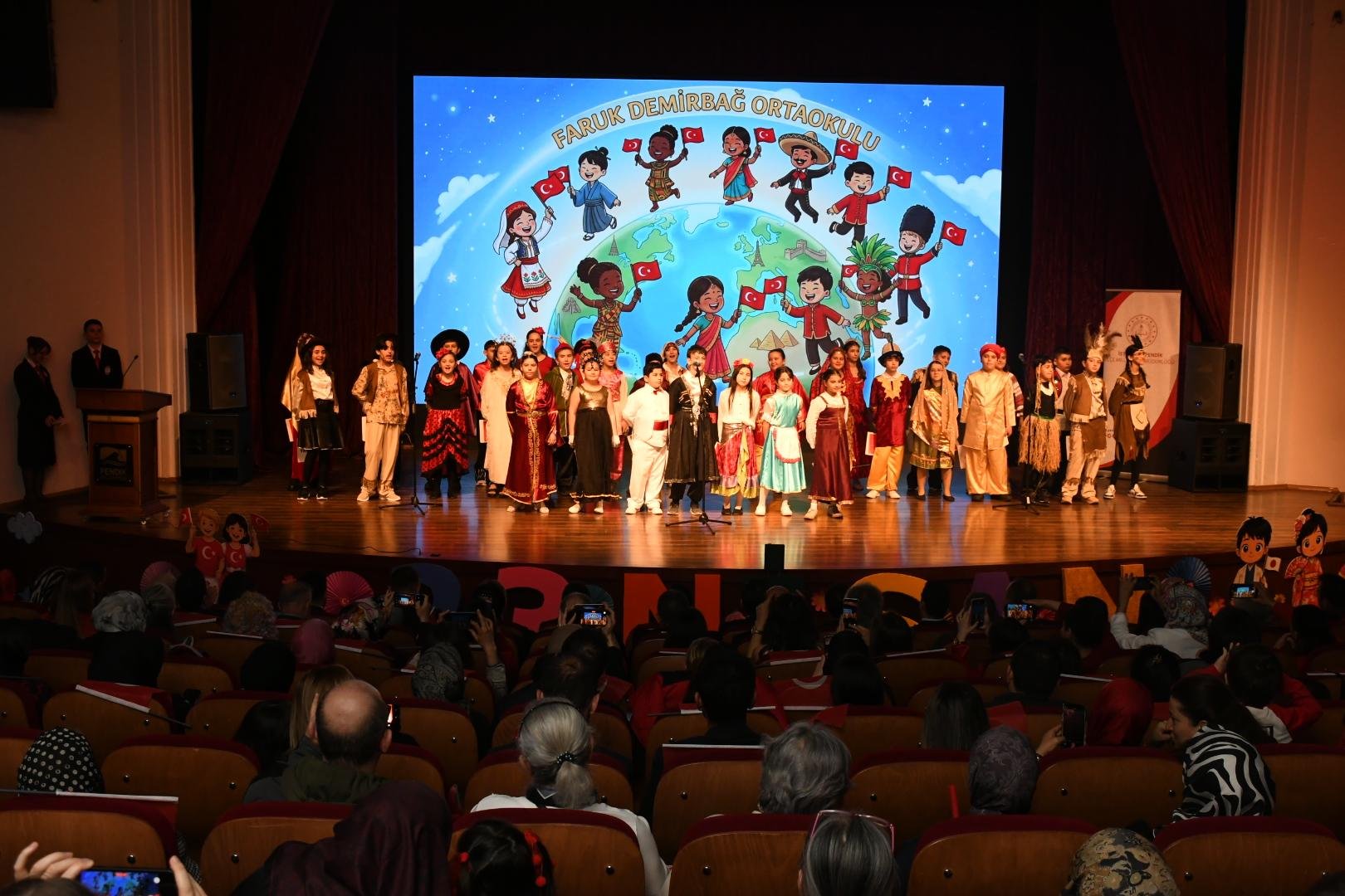 Çelenk sunumunun ardından Pendik’teki bayram kutlamaları, Yunus Emre Kültür ve Sanat Merkezi’nde gerçekleşen Seyit Burhan Toprak İlkokulu ve Faruk Demirbağ Ortaokulu tarafından tarafından hazırlanan resmi kutlama programı ile devam etti.