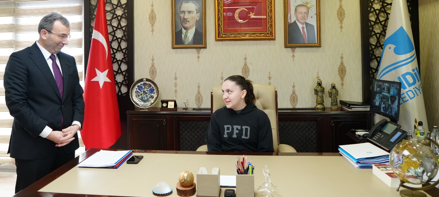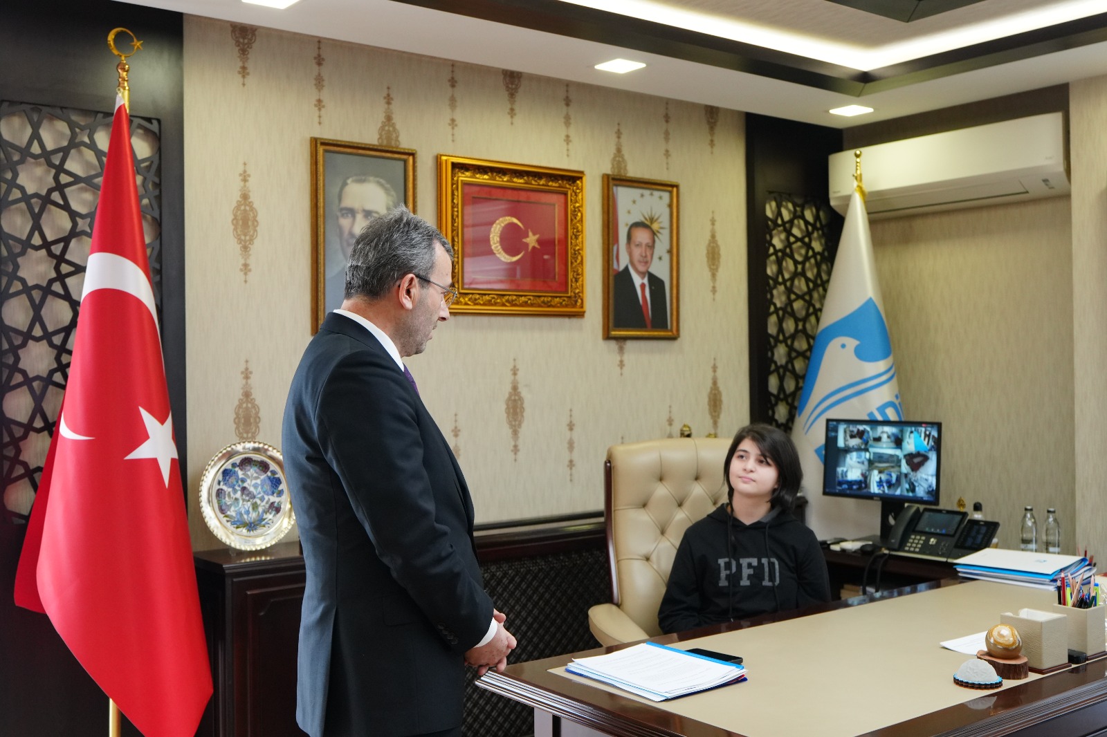 Belediye Başkanı Ahmet Cin’in koltuğuna oturan Kartal Berk, ilgili müdürlüğü arayarak yeşil alanlarda daha fazla kamp projesi geliştirilmesini istedi. Koltuğa oturan son Belediye Başkanı Umut ise okuluna bisikletle ulaşım yapılması talimatını verdi.