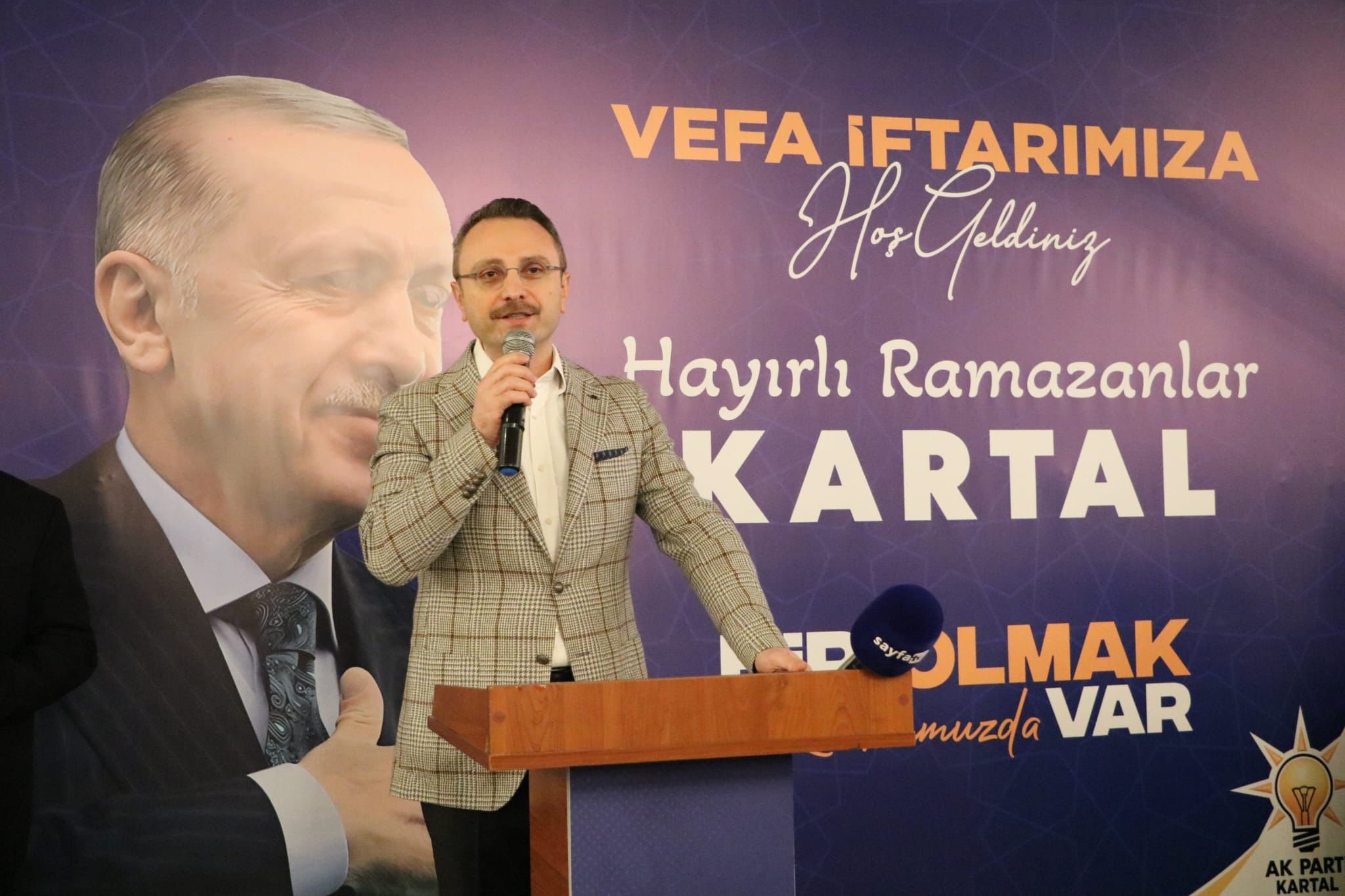 İftar programında bir selamlama konuşması yapan AK Parti İlçe Başkanı Haydar Göksoy, “Bugün burada sadece bir iftar sofrasında buluşmadık. Bugün burada bir vefayı, bir kardeşliği, bir davaya adanmışlığı yeniden tazeledik. AK Parti Kartal İlçe Başkanlığı olarak gelenekselleştirdiğimiz Vefa İftarımız; geçmişten bugüne emek vermiş, alın teri dökmüş, bu kutlu yürüyüşte taş üstüne taş koymuş her bir dava arkadaşımıza bir teşekkürdür, bir minnettir, bir gönül selamıdır. Çünkü biz biliyoruz ki; Siyaset sadece seçimden seçime yapılan bir faaliyet değildir. Siyaset gönül işidir. Sadakat işidir. Vefa işidir. Bu davada hiçbir zaman inancımızdan, davamızdan, millet sevdamızdan vazgeçmedik.” Dedi.