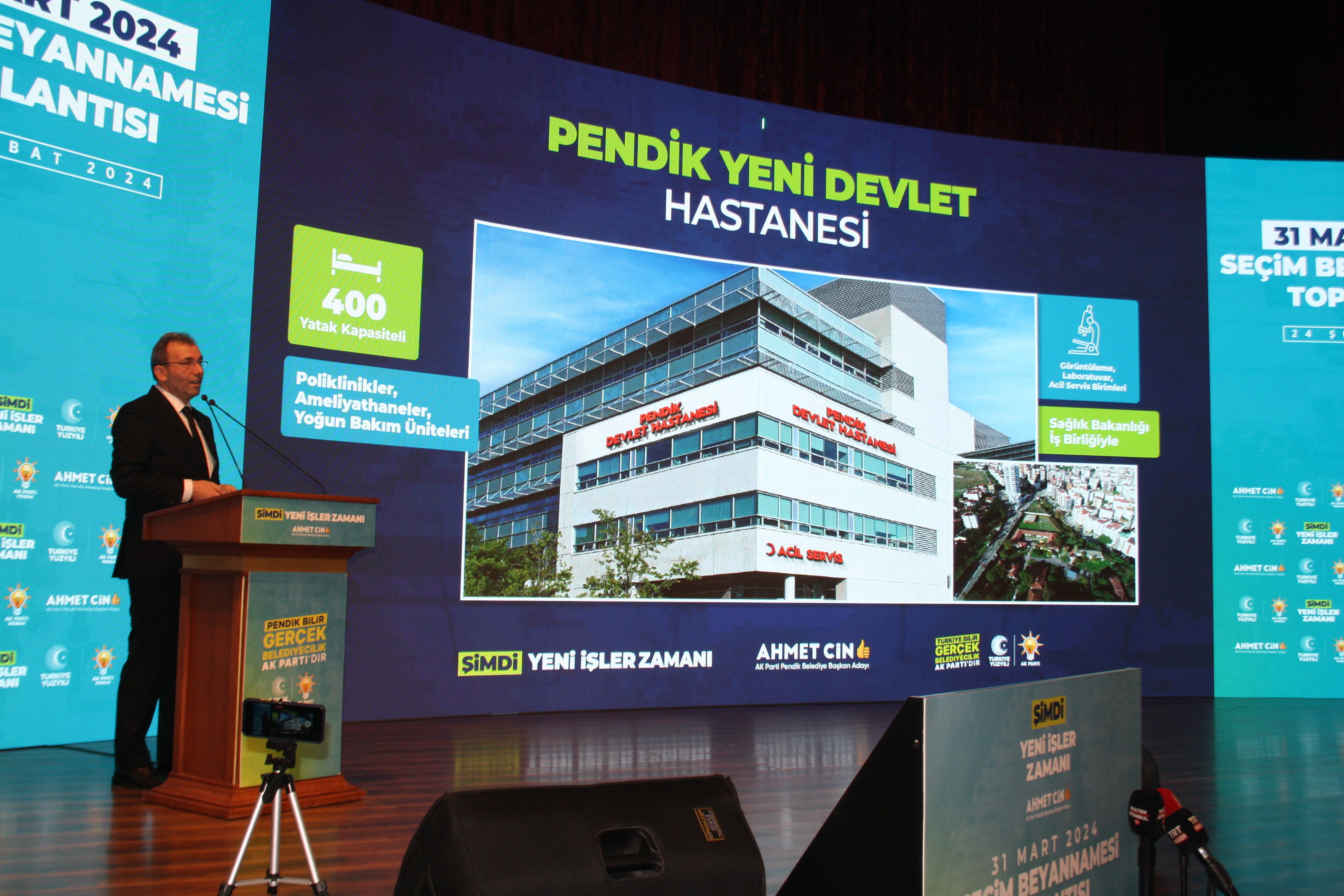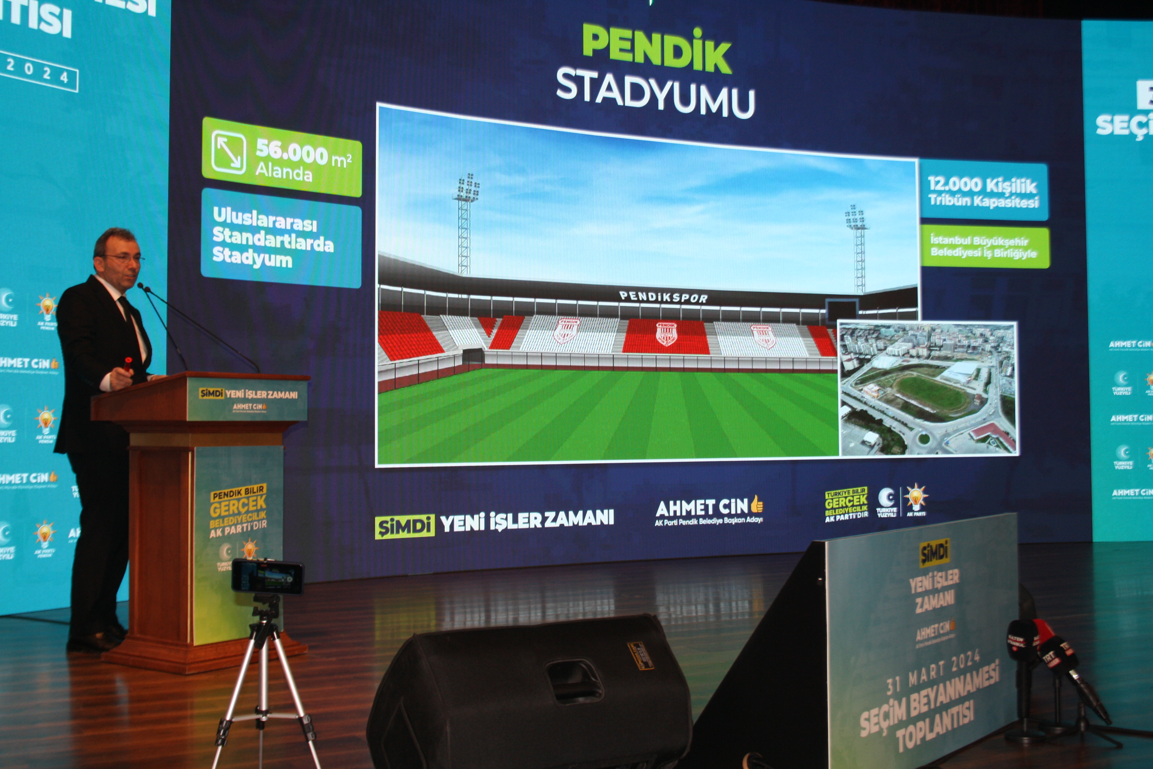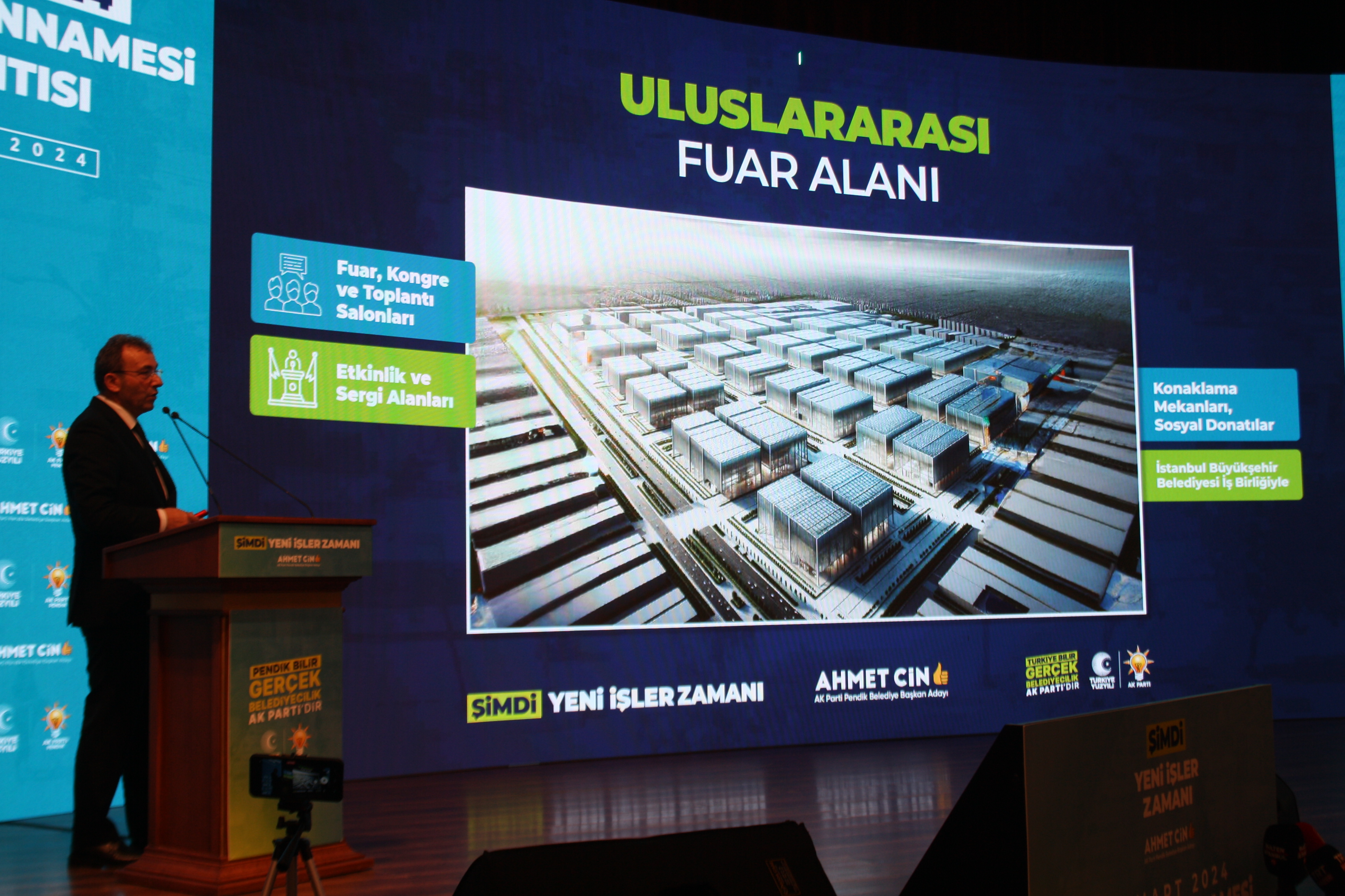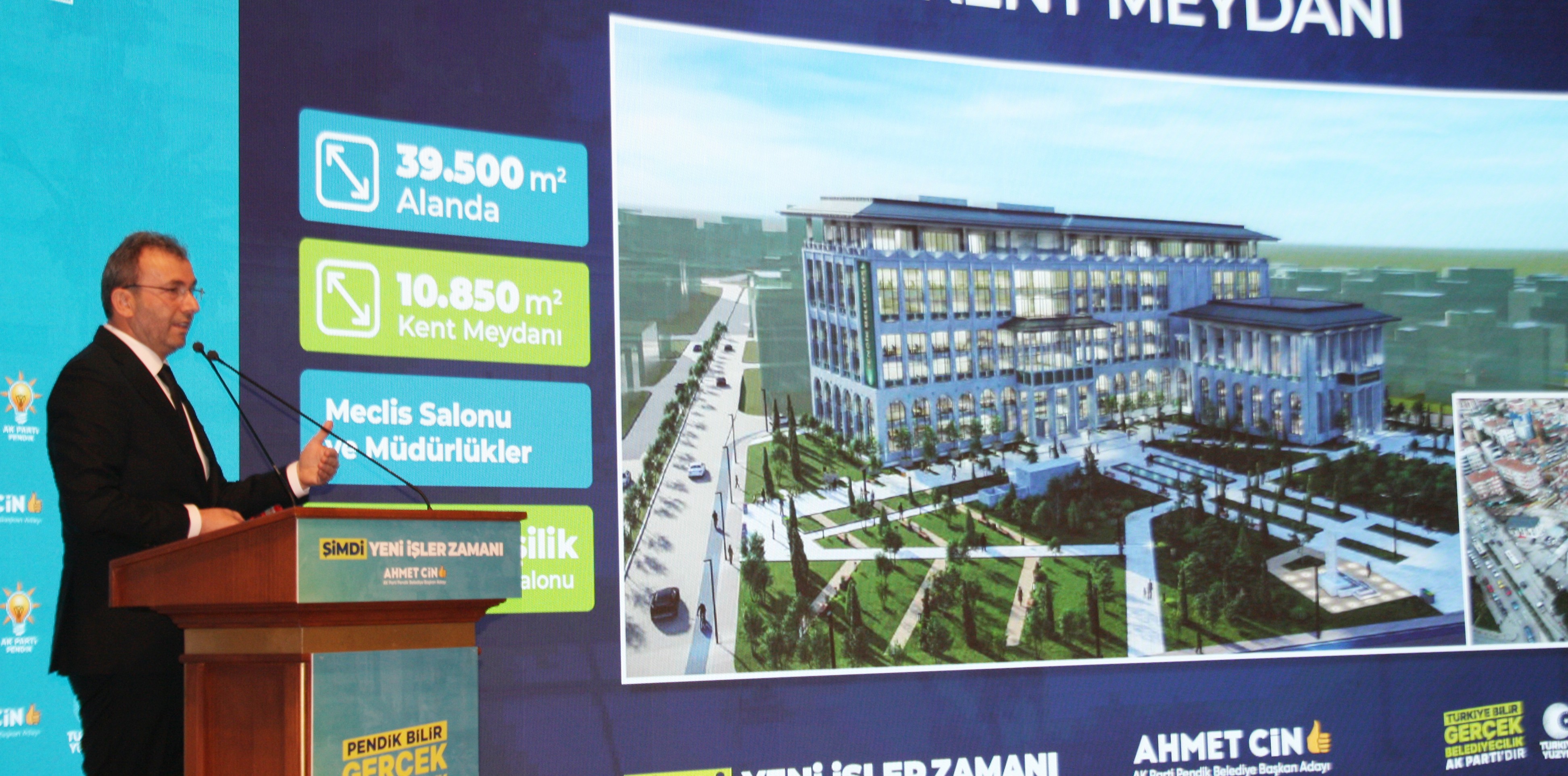 Slaytlar eşliğinde Pendik'e değer katacak yeni dönem projelerini tanıtan Başkan Ahmet Cin, konuşmasını, "Biz 5 yıllık süreçle ilgili projelerimizi tamamladık, planlamasını bitirdik. Büyükşehir belediye başkan adayımız Murat Kurum’a ve ekibine çok teşekkür ederiz. Bu kısa zaman içinde önümüzdeki dönemde büyükşehrin mutabık kaldığımız konuları devreye alma zamanı gelecek ve 31 Mart akşamı inşallah Pendik’te rekor bir oy alarak ve Pendik’te Murat Kurum’a en yüksek desteği vererek onun da seçimi kazanmasını sağlayacağız ve 1 Nisan’dan itibaren kollarımızı sıvayarak planlarımızı gerçekleştirmeye başlayacağız." sözleriyle tamamladı.