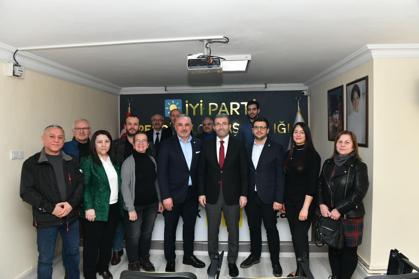 Ziyarette İlçe Başkanı Süleyman Turan ve yönetimiyle bir süre sohbet eden Belediye Başkanı Ahmet Cin, çalışmalarında başarılar dilediği İYİ Partili yöneticilerle hatıra fotoğrafı da çektirdi.