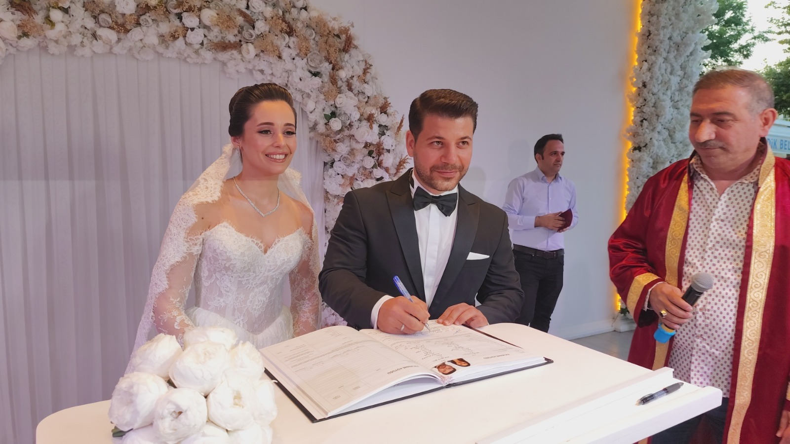 22 Haziran Pazar günü gerçekleşen nikah törenine, iş, siyaset, spor ve sivil toplum dünyasından pek çok ismi katıldı. Yoğun bir katılıma sahne olan törende, genç çiftin nikâhını Pendik Belediye Başkan Yardımcısı Ali Çelik kıyarken; nikah şahitliklerini AK Parti Pendik İlçe Başkanı Özer Sarıkaya, CHP Pendik İlçe Başkanı Niyazi Güneri, Belediye Başkan Yardımcısı Atakan Yüce, PESİAD Başkanı Cüneyt Battal, iş insanları Sami Bayram ve Şerafettin Taştan ile çiftin arkadaşları yaptı.