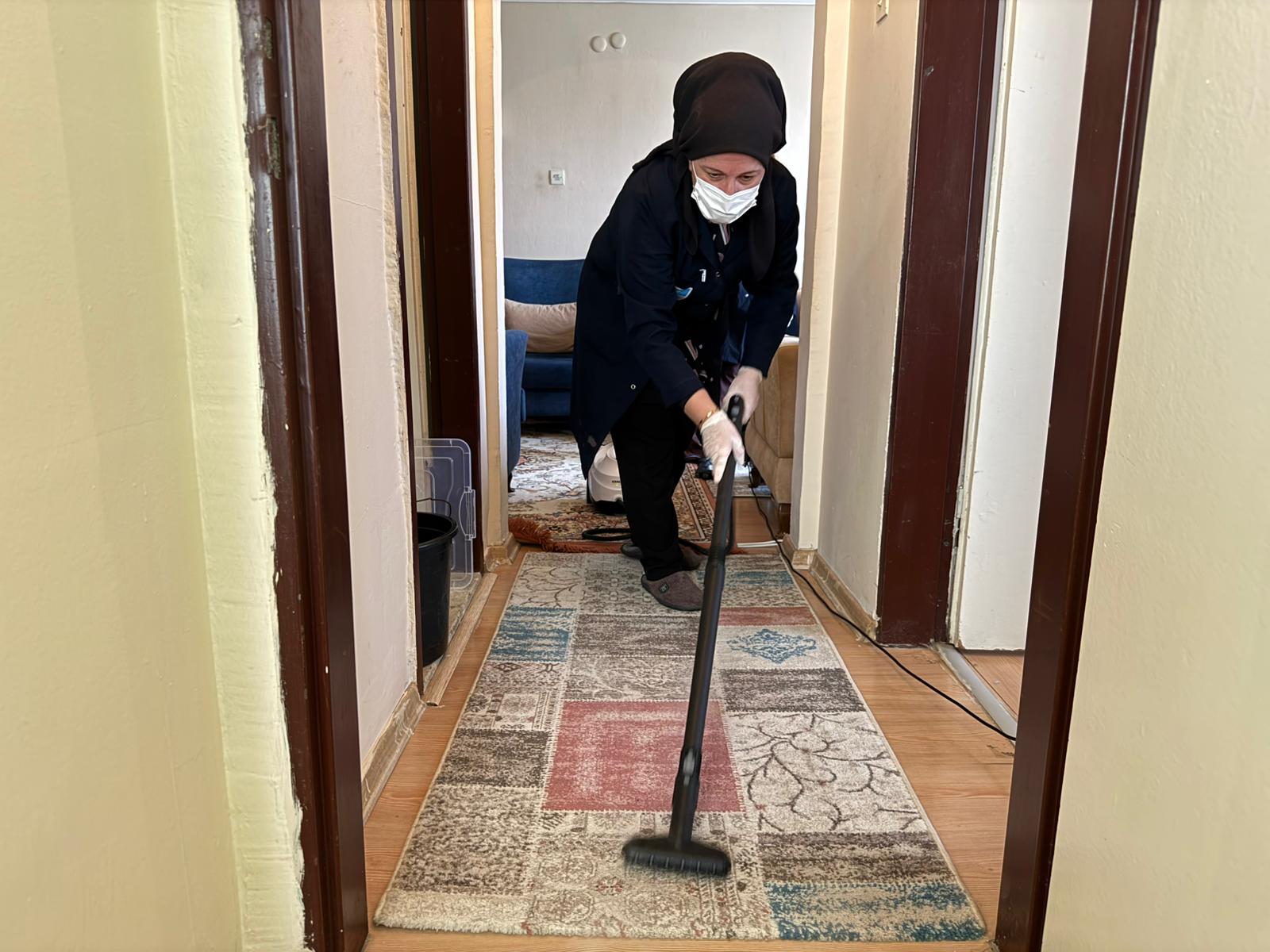 Ekipler perde, halı ve koltuk yıkama, cam silme, çamaşır ve bulaşıkların makineye atılması gibi temizliğin yanı sıra detaylı mutfak ve banyo temizliği de yapıyor. Böylece ihtiyaç sahiplerinin evi Ramazan Bayramı’na temiz bir şekilde giriyor.