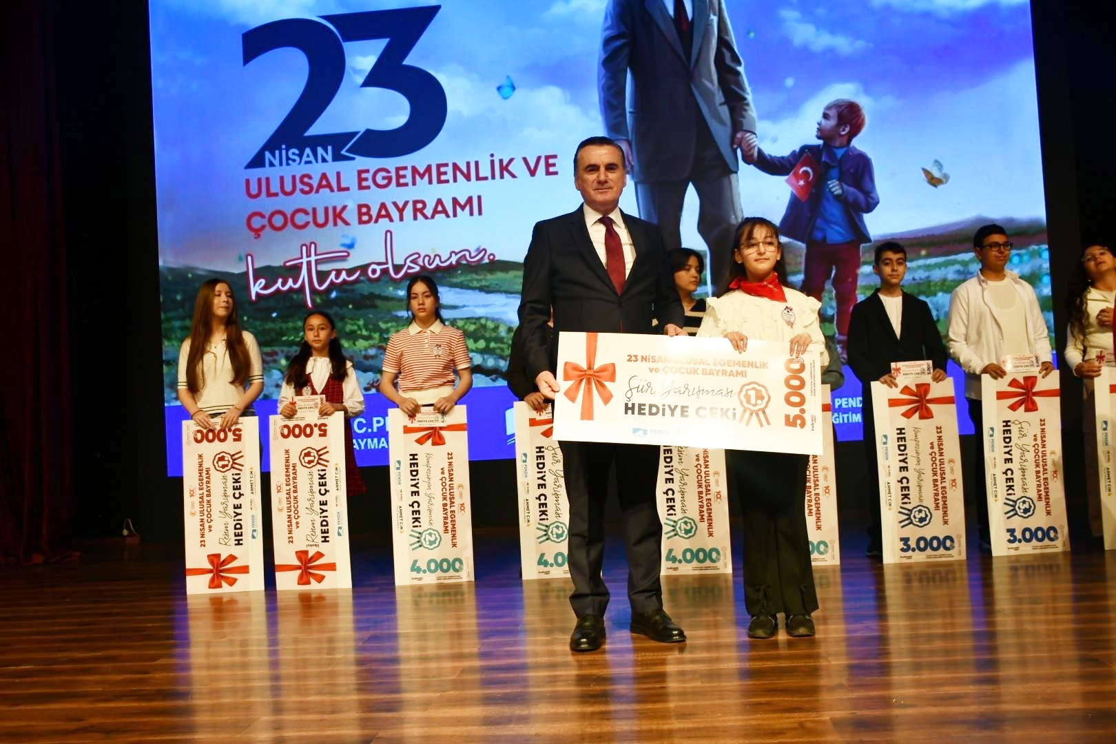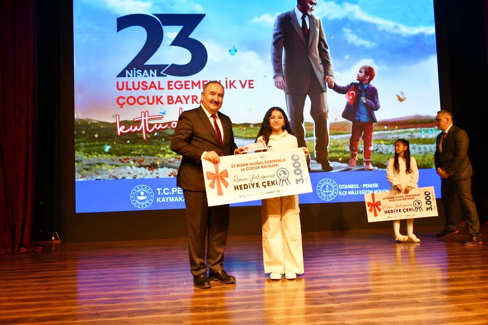 Çelenk sunumunun ardından Pendik’teki bayram kutlamaları, Yunus Emre Kültür ve Sanat Merkezi’nde gerçekleşen Seyit Burhan Toprak İlkokulu ve Faruk Demirbağ Ortaokulu tarafından tarafından hazırlanan resmi kutlama programı ile devam etti.