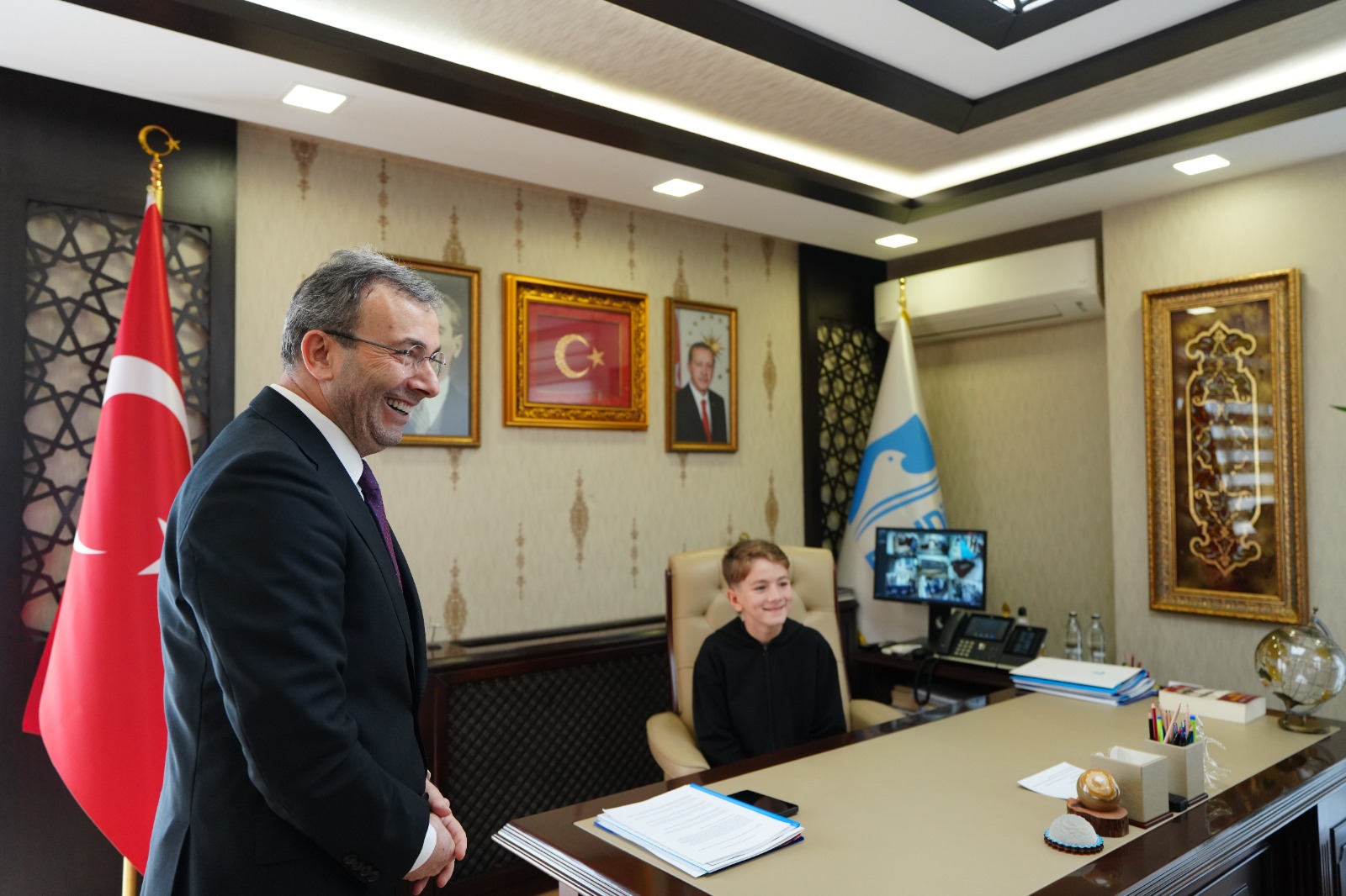 Belediye Başkanı Ahmet Cin’in koltuğuna oturan Kartal Berk, ilgili müdürlüğü arayarak yeşil alanlarda daha fazla kamp projesi geliştirilmesini istedi. Koltuğa oturan son Belediye Başkanı Umut ise okuluna bisikletle ulaşım yapılması talimatını verdi.
